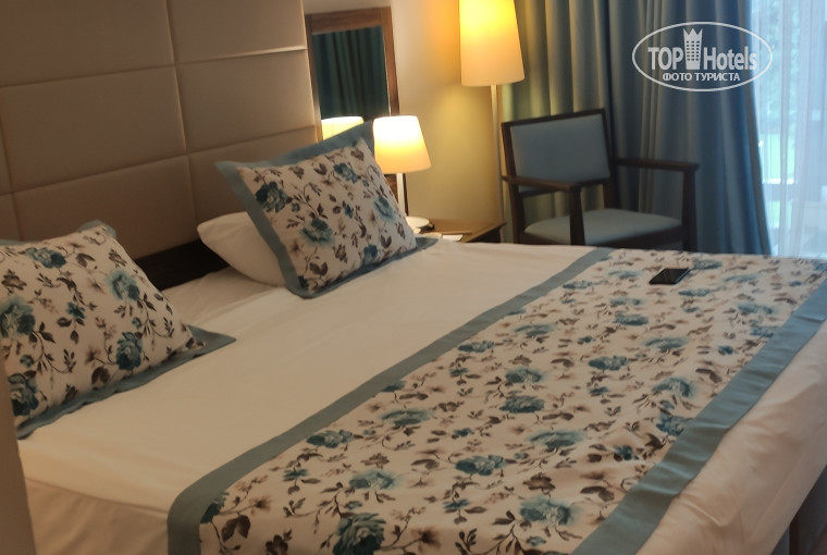 Вылет из Внуково а/к Turkish Airlines рейс ТК3739 в 2-40, задержали на 30мин. Во время полета покормили полноценным обедом из пластиковой, не одноразовой посуды с металлическими приборами и предложили на выбор к напиткам (пиво, вино), что безусловно порадовало. (Для справки у а/к Turkish Airlines не кормят на рейсах начинающихся ТК39.., т к это их «дочка».) Отдыхали через туроператора Санмар (принимающая сторона в Турции - Одеон-тур). В отель мы приехали около 10ч утра, До отеля доехали мин за 50. В предварительной переписке с Guest Relations мы попросили номер 1214 (в котором отдыхали в прошлом году), нам обещали его предоставить, но при заезде он оказался занят до 14-00,чтобы не ждать 4часа, нам предложили карточки от номеров 1218 или 1210, но т к по расположению перечисленные номера оказались для нас не очень «тихими», мы сказали что подождем когда освободится 1214.