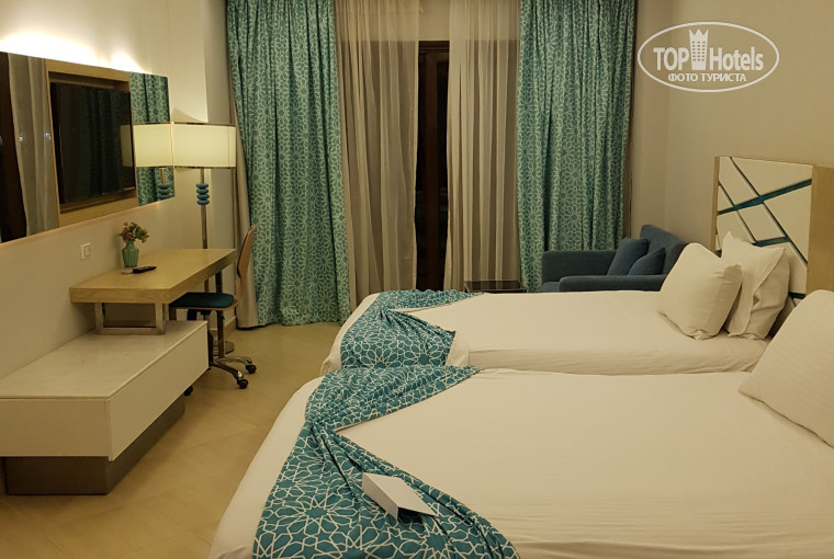 Провели в этом отеле с семьёй прекрасные две недели. Как всегда переживали за отдых, начитавшись противоположных отзывов. Пишем свой. Отель расположен недалеко от аэропорта, доехали минут за 10-15. Встретили нас гостеприимно. Приехали около 22 часов, нас сразу заселили, всё показали и накормили! Номер на троих дали двухкомнатный, в каждой комнате балкон и кондиционер, в номере все в рабочем состоянии. Номера убирают ежедневно, иногда забывают пополнять минибар (вода, соки), но по просьбе дают что нужно без проблем. Шведский стол- кормят вкусно и достаточно разнообразно. Нам понравилось, что утром за омлетом и блинчиками очередей не было (как обычно в других отелях). Территория отеля чистая и ухоженная. Для нас главное море. Оно прекрасно, вода теплая и прозрачная. Много кораллов и рыбок, даже не умеющие плавать смогут полюбоваться. До глубины нужно немного пройти Советую брать с собой тапки для купания (кораллки), без них никак. Бассейнов много разной глубины, водные горки имеются и для трусишек, и для экстремалов. Анимация работает целый день. Мы посещали аквааэробику, ежедневные вечерние шоу. Отдыхали с 23 мая, может быть поэтому показалось, что отдыхающих было немного, не было очередей в ресторане, на горки, никто не занимали лежаки на пляже и др. Отличный отель, всем рекомендуем!