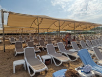 На пляже лежаки все в тени, под навесами.