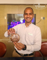 Пляж. Пляж очень просторный, много навесов с лежаками, есть мини-беседочки (бесплатно), народу на пляже мало, так как возле берега очень мелко (особенно в отлив). На пляже есть бар с качельками. Прилетели в отель на следующий день после нападения акулы, и два дня нельзя было купаться в море с пирса, но в этом отеле есть небольшая лагуна, огороженная рифом со всех сторон, там можно было купаться в любое время. Вода кристально чистая, теплая (особенно вечером). Много живности разной: рыбки, скаты, кораллы, актинии, морские звезды, пару раз видели морскую змею. Мне очень понравилась лагуна. Была в Шарме и не ожидала, что будет в Хургаде такое разнообразие. Море не разочаровало. Чуть подальше от лагуны можно плавать с инструктором в определенное временя в группе до 10 человек.