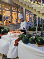 Питание. Нормальное, качественное питание, без особого разнообразия, но все что приготовлено, вкусно, без лишней соли и специй. Вкусные сыры на завтрак, всегда есть курица, говядина, рыба - в том или ином виде, стандартные гарниры, никакие салаты. Вкусные десерты, особенно восточные. Из фруктов - арбуз, дыня, финики, виноград, апельсин, яблоки, бананы. Сначала раздача была с одной стороны, потом народу прибавилось, была длинная очередь, менеджеры это заметили, и на следующий день сразу открыли раздачу и с другой стороны. Молодцы! Понравилась организация перекусов между основными приемами пищи, помимо картошки фри и гамбургеров, были куриные крылышки , пицца, пончики, вафли, мороженое. Обед можно смело пропускать. Очень вкусные фреши из фруктов (платно). Про алкоголь - мало что изменилось в этом плане. Алкоголь местного производства, низкого качества, да, пить можно в виде коктейлей, пиво более-менее нормальное, тоже местное, пили и из бутылок и из кеги - одинаковое, на второй день привыкаешь - вроде и ничего.