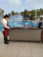 Всегда много овощей, всегда много хлеба и выбор гарниров, фрукты тоже есть всегда, сладости на обед и ужин, мороженное ежедневно на обед и ужин. Мясо- тушенное на обед и ужин, гриль ежедневно на ужин, как правило это индейка, говядина или курица. 2 раза была турецкая ночь, была баранина, шаурма. Рыба пару раз была, дорадо, тоже жаренная.