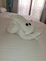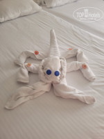 Двое взрослых с ребёнком 6 лет. Перелет из Екатеринбурга был вечерний, приезд поздний, так как рейс задержали на 2 часа. Что удивило и было неожиданным, что в самолете не было питания. Совсем! А это почти 7 часов перелет. И плюс ещё задержка рейса. Итого приехали ночью. Трансфер был групповом, поэтому заезжали по дороге в несколько отелей. Наш был последний. И вышло в нем всех больше туристов, хотя расстояние от аэропорта было дальше всех предыдущих отелей. Заселили сразу, но не очень быстро. Перекус не преддожили. Только сок. Номер дали в первом корпусе. 1234. Две смежные комнаты. Второй этаж с видом "на сад", а это на внешнюю дорогу между соседним отелем. Но вид не плохой, с балкончика видно море в боковом ракурсе. Зато тихо и спокойно. Уборка в номере каждый день и смена белья тоже. Каждый раз делали разные фигурки прикольные из полотенец. Очень радовали ребенка, да и нас). Благодарили горничных чаевымм. Лифтом не пользовались, так как этаж второй. Вай фай хороший только в номере и на рецепшин. В районе моря, в ресторане, у бара и аквапарка нету или очень слабый. Территория компактная, зато ухоженная. Питание вполне хорошее, были рыба, мясо, курица. Из фруктов арбузы, дыни, папайя, виноград, персики. Всё свежее и вкусное. Рестораны аля карт приятные. Всё красиво и вкусно. Аквапарк и бассейны тоже порадовали. Всё чисто, мест и шезлонгов хватает всегда. На пляже бунгало и лежаки в достаточном количестве. Анимация работает. Каждый день разная программа, шоу. Вечером подсветка красивая везде. В общем впечатления приятные! Всё на хорошем уровне. Всё прилично, чисто. Отель новый и современный.