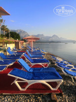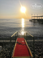 Стоят лежаки в три ряда, за счёт узкой полосы пляжа. На лежаках грязные матрацы. Вечерами матрацы не убирают, после дождя, на утро, все мокрое и не приятное. При нас сделали спуск в море, чтоб людям было комфортно заходить по гальке в море.
