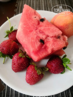 На обед и ужин вкусный арбуз и яблоки, жёсткая груша, сочный и кислый персик, и абрикос, слива. 😜