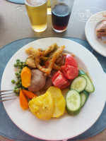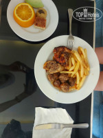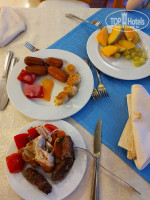 В ресторане еды много и разнообразие есть. Курица, идейка, перепелки, утка, говядина, тунец, палтус, скумбрия, крабы, кальмары, сосиски, мясные рулеты, колбасы и сыры, рис, кус кус, фасоль, макароны, картофель в различных видах, аналог долмы, фаршированный перец и помидоры, овощи печёные, тушёные и свежие. Восточные десерты, пирожные и выпечка. Из фруктов ежедневно дыня, виноград белый и красный, яблоки, финики и по вечерам арбуз. Еда на любой вкус. Мы так хорошо завтракали, обедали и ужинали, что далее брали только соки и мороженое в барах. Люди сидевшие у бассейнов постоянно ходили за едой в бар, так что голодными не останетесь!