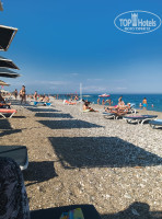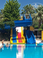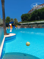 Летели из Новосибирска авиакомпанией Azur Air с оператором PEGAS Touristik. Долетели хорошо багаж получали очень долго. Трансфер до гостинице полтора часа. В отеле нас встретил вежливый персонал в лице Адема, не дожидаясь 14-00 выдали нам ключи от отличного номера на 3 этаже с видом на горы. Нас ожидал сюрприз в виде бутылки вина и фруктовой тарелки. В номере все работало. Сделан ремонт, свежая мебель, убирались в номере регулярно. Есть несколько русскоязычных тв каналов. В мине баре пополняли бутылки с водой. Еда в ресторане нормальная, голодными не будете. Территория не большая ,зеленая, чистая. Есть две водные горки. Бар при ресторане, на бассейне и на пляже. Освежающие напитки и местный алкоголь бесплатно. Мороженного в этом году в отеле нет. От гостиницы до пляжа променад 10 мин. На пляже лежаки с приличными матрасами ,места всем хватало. Пляж мелкая галька , вход в море пологий- галька. Море чистое и теплое. Этот отель посещаем не в первый раз , нам все понравилось. Отдых удался.