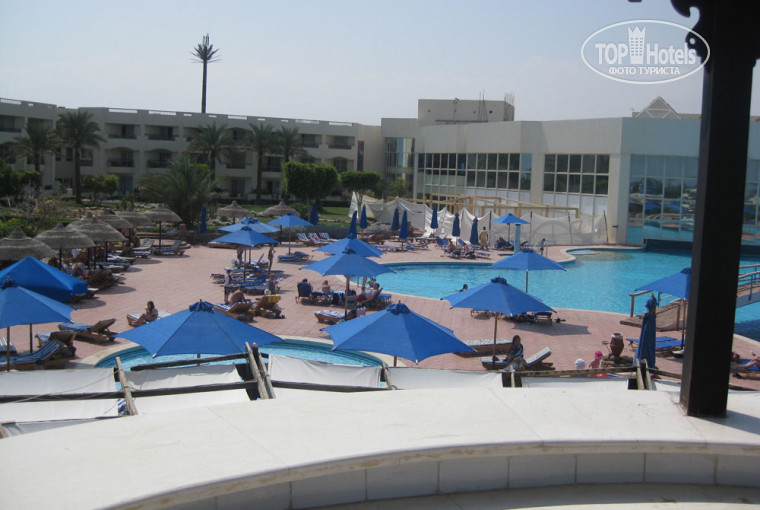 БАССЕЙНЫ. Бассейнов было по сути два - один большой примыкающий к корпусу без подогрева и поменьше на территории с подогревом. В первом мы ни разу не купались. С лежаками проблем особых не было, а откисать в теплой водичке с бокалом молочного коктейля (25 фунтов) красиво оформленном было просто шикарно. Вода была чистая, хлорка чувствовалась, но очень терпимо. Был еще маленький третий бассейн с джакузи около бунгало, но он был тоже без подогрева и находился за символическим заборчиком. Мы так и не поняли, был он общий или только для жителей бунгало.