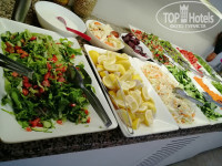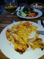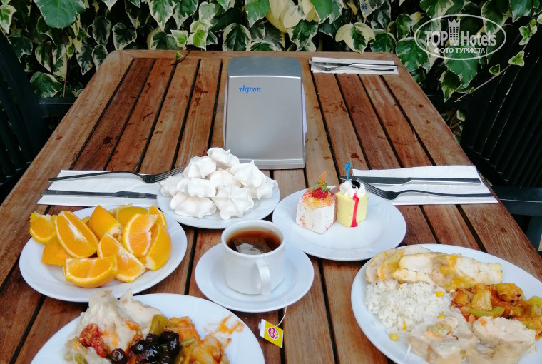 Территория отеля состоит из 2х корпусов, двух бассейнов, бара и ресторана. Каждый день на завтрак ,обед и ужин были сладкие резаные местные апельсины, иногда невкусные яблоки, из фруктов в июне это все. Питание хорошее, все свежее и вкусное, наедались. Стандартный набор еды, по два вида мясного на обед и ужин, гарниры, картошка фри, салаты, оливки. сладости. Делали курицу и рыбу гриль. Питание на 4 без изысков. Понравилось, что все спиртное подают в хороших стеклянных бокалах. А вот посуда не вся хорошая. Перекусы после обеда тоже есть.