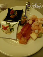 Огромный выбор мяса, вкуснейшая баранина, говядина и телятина (каре ягненка на обед- это моя любовь). В обычные дни не очень велик выбор рыбы (пару-тройку блюд в основном зале и пару видов на гриль-зоне). А вот в четверг- рыбный день. При входе нас ждала гора суши, на гриль-зоне огромные рыбины, целиком запеченные в соляном панцире, мидии, креветки, всевозможные закуски из рыбы.
