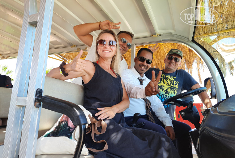 Приехали в отель в 23:30, нас сразу заселили. В номере есть всё необходимое - сейф, кондиционер, холодильник, удобная кровать, шикарные одеяла. Номер не большой, но мы там только ночевали. До пляжа ехать минут 5 на открытом электромобиле, дорога совсем не напрягала, так как были песни, а порой и танцы - такого я нигде не встречала, очень колоритно и весело. Водитель Sayed, между собой мы его звали "улыбашка", такой добряк и весельчак, прям молодец. Еда тоже удивила - нам было всё вкусно и разнообразно (мясо ягненка, курица, говядина, много гарниров и выпечки). Анимации в отеле нет, но после 19:00 каждые пол часа электромобиль возит на дискотеку и анимацию в соседний отель, нам было этого достаточно (так же с песнями, это замечательная фишка любимого "Lemon&Soul").