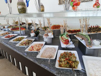 По еде: все было хорошо, но заметно было, что немного экономят на фруктах и сладостях. Но мы все понимаем - что поделать, такое время) На главном бассейне (на внутреннем) на баре днём в дровяной печи пекли очень вкусные местные пиццы - иногда с мясом, иногда с сыром - мы сами их не сразу обнаружили :) Ресторан у отеля очень большой, внутри во время обеда сложно найти свободный столик (потому что на улице на террасе очень жарко), поэтому на обед лучше ходить не к 13, а к 14 часам). Очень удобно то, что блюда дублируются, что ощутимо разгружает очереди