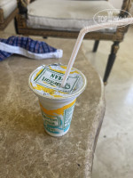 Вода в стаканчиках, в номер приносят воду в бутылках по 0,5. Остальная газированная вода из автоматов. Кофе, капучино, горячий шоколад из кофемашмны.