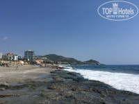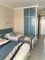Спойлер: Отель в целом нормальный, но купаться на пляже невозможно из-за огромных волн. Начитались плохих отзывов и были готовы ко всему, но оказалось не всё так ужасно) наш номер был в первом корпусе, 4 этаж, с балконом, с видом на море и на трассу, по которой круглосуточно ездили фуры, автобусы, ночью от этого шума не спасали даже закрытые окна, т.к. шумоизоляции как таковой не существовало. Сам номер небольшой, Мебель старенькая, тумбочки не вытирали давно, но хотя бы сантехника чистая. есть всё необходимое (кондиционер, ТВ, фен, шкаф с вешалками, холодильник), всё в рабочем состоянии. Убирались каждый день, но за 7 дней не поменяли полотенца ни разу. Мы так поняли, что нужно было платить чаевые) Ежедневно приносили мыло и шампунь, бумагу. Питание нормальное, была говядина, индейка, почти каждый день курица, 1 раз была рыба, в отзывах писали что из мяса только наггетсы, при нас они были всего 1 раз. Из гарниров: рис, макароны, спагетти, булгур, чечевица, нут. Из знакомой нам еды: огурцы, помидоры, разная зелень, фасоль, сыр 2 вида, колбасы, оливки, разные соления, яйца, омлет, каши (ужасно сладкие), хлопья с молоком, лукум, халва, изюм. И куча непонятной нам и не очень аппетитной еды, которую мы не рискнули попробовать. В принципе можно найти что поесть, голодным не останешься, но в основном еда на любителя. Мужу не понравилось, мы с детьми были довольны) Фрукты очень вкусные и сладкие - отборная крупная черешня, персики, груши, арбуз. Алкоголь на все включено только разливные напитки в баре отеля, всё разбавленное непонятного качества, на пляже из бесплатного только чай и вода. Соки в автомате порошковые, кофе все время заканчивался. Вода в кулере и привозят бутилированную бесплатно. На территории 2 бассейна, оба очень чистые, можно купаться до 20ч. Анимации нет, были вечера типа караоке, дискотека, какие-то игры, но всё было на турецком, английском, немецком, нам было не интересно, Русские в отеле были только мы))) На ресепшн есть русская сотрудница Галина, решала наши вопросы без энтузиазма, хоть они у нас возникли всего пару раз. Море через дорогу, по подземному переходу, что очень удобно. Самый огромный минус отеля - пляж! Каменные плиты + огромные волны, купаться практически невозможно. В Махмутлар судя по отзывам всегда такие волны, если главная цель вашего отдыха - купаться в море, вам однозначно не сюда. Нам ещё не повезло с погодой, на второй день нашего отдыха на море начался шторм, длился дня 3, купаться мы ездили в Аланию на городской пляж, там волн нет. В общем, отель не рекомендую только из-за пляжа и неспокойного моря в этой местности.