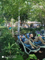 Отель очень понравился.Пляж просто супер,заход в море отличный,мелкая Галька и метра через два уже глубоко,можно плавать.Лежаки не только на песке,но и на газончике под деревьями.
