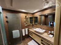 Приехали в отель в 17.40, но номер ещё не был готов - дали в 17.50=) Дали в пятом корпусе (5101) - мало того, что это самый дальний корпус, так ещё и самый дальний номер от моря и ресторана, хотя сотрудник ресэпшн прекрасно видел что мы с двумя детьми. После долгих диалогов, на следующий день поменяли на хороший номер в 14 корпусе - спасибо Assem. Сам отель просто шикарный. Постоянно везде возят гольф кары! Еда - лучше встречал только в Дубай ком Атлантис. А десерты и того лучше! Бар и официанты в лобби - также просто шикарные. В общем во всём сплошные 5+! Минуса два: вечерняя анимация - это полный провал - все те 5 дней что мы здесь - играет что-то их 80х-2010х. Просто какая-то попса раритетная... И ещё хромает, на обе ноги, уборка номеров - где видно, там убирают, где не видно - всё щалчпанно и пыльно. На стенах сан узла, в зоне унитазов - подтеки... Зеркало-линза - с тыльной стороны непротиралась видимо с момента открытия номера. И да, сломаны обе защёлки раздвижных дверей на балкон. Но эти минусы всё равно дают отелю твёрдую пятёрку, ибо остальное просто супер!