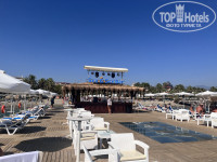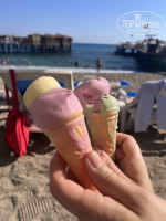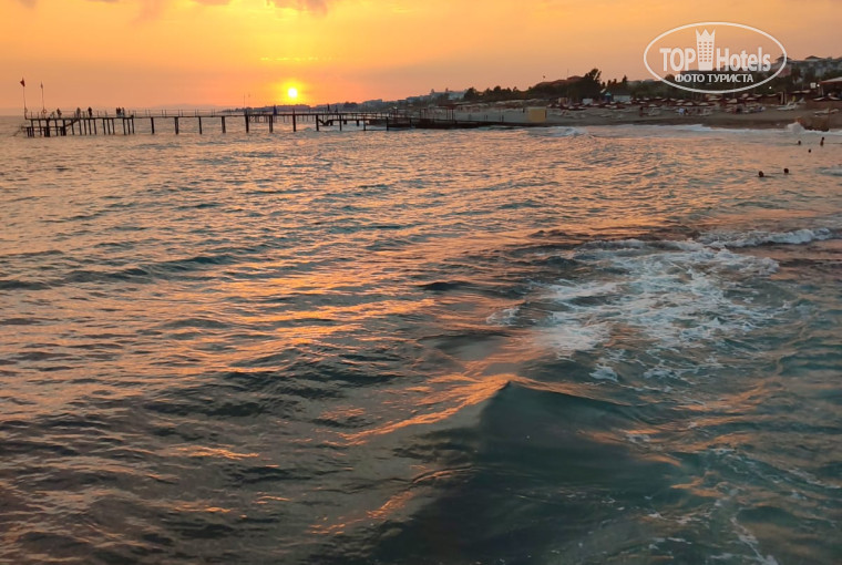Вход в море песчано-галечный, заходить комфортно. В наши даты отдыха были волны, но нам это нравится. Вода чистая, правда пару дней что то прибивало к берегу. На пляже всегда можно было найти свободные лежаки, персонал пляжа всегда помогали найти свободный лежак. Даже на пирсе всегда видела несколько свободных мест. На пирсе отличный бар с прохладительными напитками (кроме пива). Вечером на пирсе проводят дискотеки. Мы ходили, все устроило и музыка и обстановка.