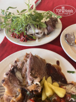 Долго писать не буду. Голодными не останетесь. Есть и мясо в разных вариантах (в соусе, гриль, отварное), рыба, овощи, фрукты, сыры, соления, выпечка, десерты. Два раза в неделю тематические ужины. В понедельник Турецкая ночь. Готовят национальные турецкие блюда. В четверг Аляска шоу. Готовят блюда с морепродуктами. В Аля-Карт меню практически такое же как в основном ресторане, при заказе Вам предложат выбрать горячее (рыба, баранина или говядина). Разница с основным только в том, что там индивидуальное обслуживание и сервировка. В перерывах работы основного ресторана можно перекусить в Снек Баре (нам там очень понравилась курица гриль). Этот бар работает с 12.00 до 16.00 и ночью с 23.00. В кондитерской подают мороженое и вкусные венские вафли. По алкоголю как везде. Если хочется разнообразия, то лучше пойти в пул бар.