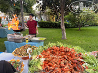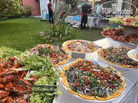 Территория небольшая, зеленая, много цветов и плодовых деревьев. Персонал постоянно следит за чистотой. Три бассейна по возрасту, амфитеатр, волейбольная площадка, настольный теннис, 2 бара+1 бар на пирсе, кондитерская.