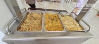 Еда всегда холодная , есть микроволновка 1 на всех))))) гарнир картошка долками и отварная всегда сырая, столовая сама по себе, у них свой начальник его спрашивают но его нет никогда.. .все люди не довольные жалуются на питание. Столовая просто ужас мы сдались на 4 день и начали ходить в кафе Веранда, средний чек на двоих 2500, больше кафе и нет рядом...до этого 350 метров примерно... набережная есть но до нее идти по темной улице начинается в кафе веранда, набередная слабая..еле освещается...