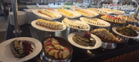 По шведскому столу разнообразия достаточно на любой вкус, конечно морепродукты не постоянно, но пару вид рыб всегда присутсвует, курица и говядина также, паста, гарниры, йогурты, салаты, фрукты. Также по системе а ля карт в данный момент доступны итальянский и стейк хаус, все очень вкусно.