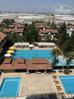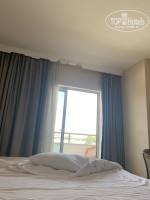 Мы приехали 30.08.23 года, дорога от аэропорта заняла минут 20-25. По приезду работники нас отправили на обед, сами начали искать куда нас заселить. 1 вариант был бунгало-муравейник от которого мы сразу отказались, на полу были отпечатки ног, грязь, волосы. Я спросила когда будут убираться в номере, на что нам ответили, что он уже убран.🤡 Заплатив 20$, нас заселили в номер 1225 (фото прилагаются), тут уже мы пошли со скандалом, русскоговорящая женщина пообещала переселить только на следующий день, мы были в шоке. Пятна желтого цвета на всем матрасе, нет нормальной двери в душе, паркет весь вздулся, с кондиционера течет на кровать, на прикроватной спинке пятна непонятно бурого цвета, грязь, чужие волосы, мини-бар отсутствует, мыльные принадлежности в индивидуальных упаковках как во всех отелях отсутствуют, сейф отсутствует. Проще перечислить что там есть, а это: вода с неприятным запахом(не всегда есть), телевизор с телеканалом тнт, кондиционер. На следующий день нас переселили, я выдохнула, номер не плохой 1506, но у 1505 и 1506 номера одинаковые замки, заходи кто хочешь. Ну и огромное количество муравьев везде: кровать, подушки, пол, стол, балкон. Мы жаловались, но их так и не потравили. В этом номере так же никто не убирался нормально. Кормят сплошной туалетной бумагой, есть не возможно. Бар с бесплатным алко включает в себя пиво-жигули 50р и вино 150р. Пепси со вкусом хлорки, как и вся газировка. Кофе самый мерзкий из всех которые мы когда либо пробывали, лучше просить с молоком. (Мы ехали во все включено). Куча мух везде, некоторые кусаются, причем больно. Шершни прям в отеле летают, с этим ничего тоже не делают. Трансфер на море очень не удобный, спасибо, что он есть называется. Не удобное расписание, на завтраки мы ходили редко, потому что есть там просто нечего, везут на море в 11:45, начало обеда в 12, следующий трансфер только в 14:00 и в него набивается столько народа, что туда просто всем не влезть, приходится ждать до 15:00 или идти по жаре 40 минут. Пляж общественный судя по количеству турков без браслетов, мусора до дури. Свалка прикрытая песочком. Заход в море хороший, Галька есть, но мелкая. Море порадовало. Мы всегда лежали на лежаках прям на берегу, а не там в кустах где выделена зона для отеля. Вообщем мы дома и рады этому, спасибо за море, но задумываемся больше не приезжать в Турцию, как-то даже на улице ощущение не ухоженности и пофигизма местных, горы мусора и сами люди стали не приятными. Это была 11 поездка в Турцию- она же и самая худшая во всем.