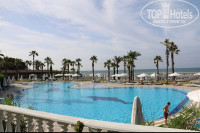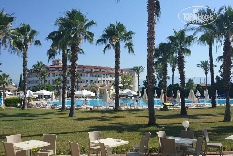 Отель превзошёл ожидания по всем параметрам, цена-качество)) ехать от аэропорта часа два с развозом туристов., отель находится на 1 линии, с большой зелёной территорией, в окружении много магазинов, кафе, аптек. Три бассейна, детский с крутыми горками, целый мини аквапарк! Средний, для подростков и взрослый. 4 корпуса, дальний через мостик, он дешевле, но даже и лучше, поскольку тише, и пройтись можно по всей территории, это полезно и не напрягало! Вид у нас был из него на посёлок и горы вдали. Номер стандартный, новый, после ремонта, все чистенькое и приятное, тапочки полотенца, все меняли и обновляли. Бары на пляже и у бассейна, Ресторан просторный, мест всегда хватало всем. Пляж песочек, редко есть камни на глубине. Еда супер разнообразная, по несколько видов рыбы, мясо чаще баранина ( всегда в котлетках или на гриле обалденно вкусная, мягкая) зелень, сыры, салаты, мороженое на ужин, пончики блинчики, омлеты , фрукты, и так далее. Столов и лежаков хватало) Анимация, и детская и взрослая, мини клуб и шоу, а так же работники отеля - молодцы, огромное спасибо за отдых!Ребята просто супер!