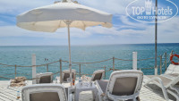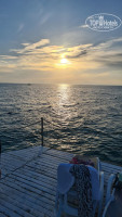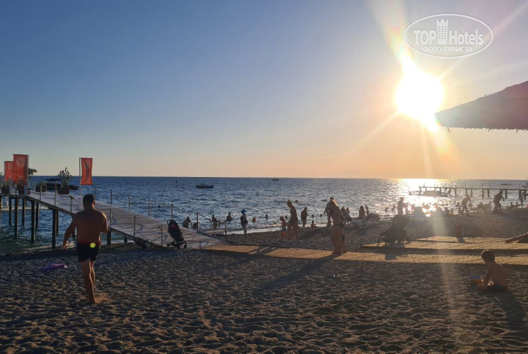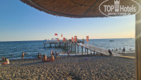 Пляж: Пляж находится в 5 минутах от основного здания. Надо пройти по дорожке мимо ресторана 24/7, торгового павильона и через речку-вонючку). Пляж большой, песчаный. Лежаков много, но отель большой, поэтому если хотите хорошие места, то надо занимать с утра. Вход в море галечный. Для нежных ножек нужны тапочки, но галька не крупная. Чуть подальше начинается плита, она чуть скользкая, но меня нисколько не смущала. Через 3-5 шагов уже глубоко. Больших валунов в море не видела. На пляже есть пирс с лежаками. Мы успевали занимать там места и купались, спускаясь по лестницам. Бар на пляже нормальный, с 12 до 16 часов можно покушать. Есть зазывалы в магазины кожи, спа салон. Предлагают услуги по водным аттракционам. Мы от всего отказывались, подходят по несколько раз. Потом уже начали говорить, что везде были и от нас отстали). Море было спокойным только с утра, но возможно это специфика времени года.