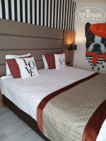 Номер нам дали трехместный, большааая кровать, и диван, все застелено. В номере есть телевизор (русские каналы 34-37). Мини бар (фанта-2, спрайт-2, кола-2, пиво-2, вода с газом и без газа), чайник, две кружки, два стакана, чай, кофе, два литра воды в бутылке. Две тумбочки у кровати, столик у дивана, большой стол и зеркало и вертикальное зеркало с тумбочкой при входе и тремя парами тапок. Большой шкаф со штангой, полками и ящиками. пол-ламинат. На балконе лампа, сушилка, столик и два плетеных кресла. Кондиционер работает (можно регулировать), шумный, но не критично, встречались и похуже.