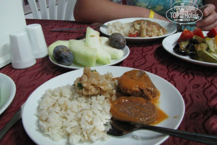 Что касается еды, то все съедобно и вкусно. Конечно, нет всяких деликатесов и тортов, но это, в принципе, и не нужно. Фото выкладываю. Много дыни и арбузов, слив, яблок. Каждый день мясо со всевозможных формах. Завтрак с 7:30. Есть творог, яйца, мед, варенье, омлеты, сосиски, фрукты. Обед с 12:30. Ужин с 19:30. Есть сладкий час, но там только сырные плюшки.