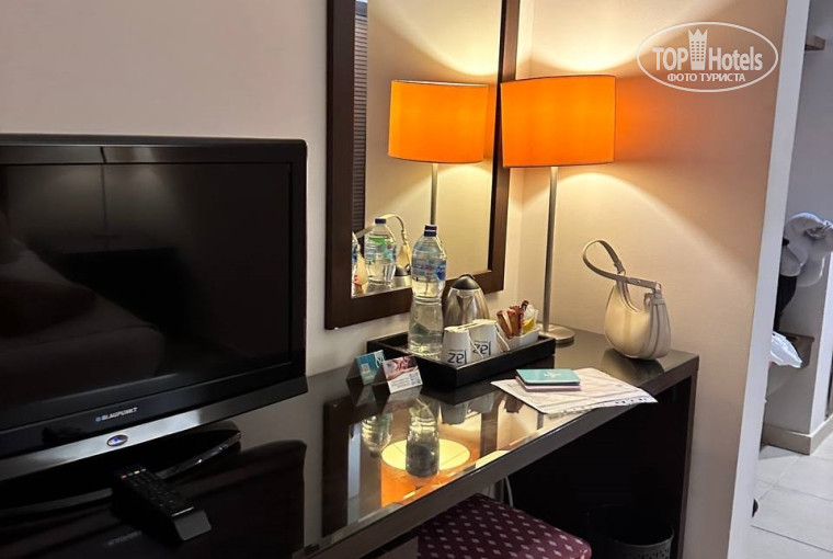 Номер неплохой, стандартный, был с видом на бассейн, большая кровать, телевизор, сейф, холодильник, большой балкон. Сразу же в пляжной сумке лежали пляжные полотенца ( их меняют каждый день, работник приходит в номер каждый день с 18-19:00) . Есть чайник, кружки, бокалы, питьевую воду в литровых бутылках приносят каждый день, чайные пакетики, кофе 3в1.