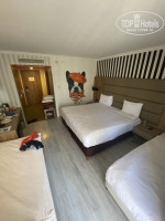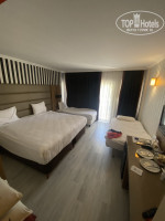 Приехали к ужину, прямо с автобуса у нас выхватит из рук чемоданы, что сразу улыбнуло. Засели нас за 15мин. в главный корпус (номер 4047) вид на крытый бассейн и кусочек моря)) За вид никогда не платим, не имеет значения, мы там только спим и моемся. Номер отличный, постель чистая, мягкая, очень высокая. Двоим детям по отдельной полноценной кровати!! Сантехника новая, все работало идеально, немного тек унитаз, просили починить, не пришли, более мы не стали на это время тратить. Полотенца новые, пушистые. Мыльные принадлежности пополняли каждый день (шампунь, кондиционер, гель, крем д тела, ват диски и палочки, шапочки даже резинка д волос). Бар тоже каждый день обновляется, и печенье и даже детское питание. Убирались каждый день, постель меняли тоже. Полы не идеальные, но есть тапочки. При въезде лежали тапочки д взрослых и д детей, детский рюкзак, панама и бейсболка, раскраска и карандаши, плюс несколько Шариков и фрукты!)