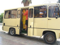 Идти до него минут 20. Раз в час ходит автобус (фото прилагаю). В первый автобус не все убираются, ждут пока он отвезет первую партию народа на пляж и вернется.