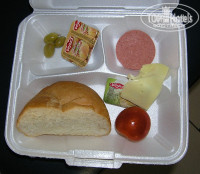 Не стоит рассчитывать на то, что это завтрак. Прилагаю фотография этого убожества. Здесь по полной программе поскупились: в общую коробку накиданы вперемешку (без пакетиков) 1 кусок хлеба, помидорка, по маленькому кусочку сыра и колбасы, 3 оливки и масло (без ножика, чтобы его намазать). Если вы едете в экскурсию или в аэропорт, купите еду в расположенном рядом супермаркете. Мы эти ланч-пакеты просто выкинули.