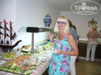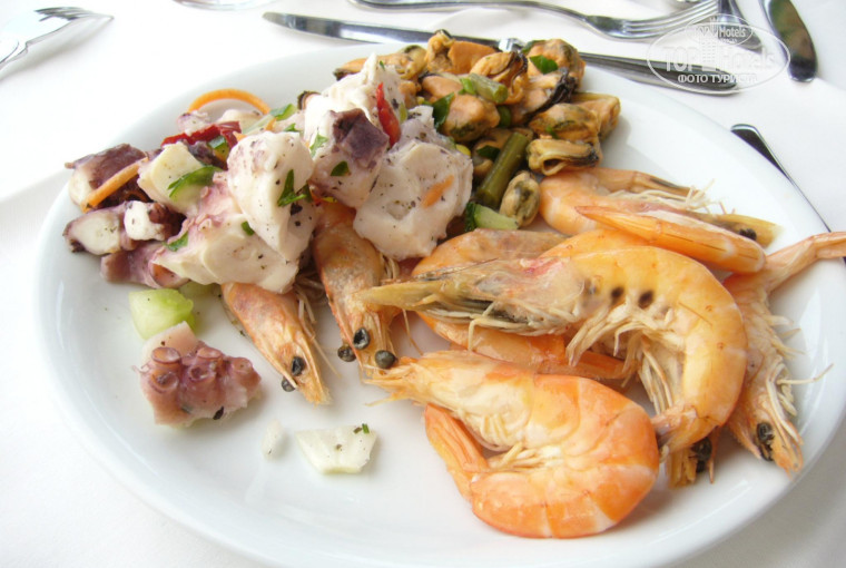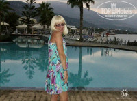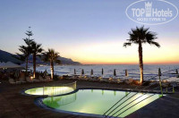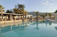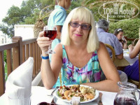 Отель очень понравился своим месторасположением: сначала горы, потом бассейн с пресной водой, потом коттеджи, потом бассейн с морской водой и сразу море. Бассейн с пресной водой находился немного далеко от пляжа и всегда был ледяной, я видела как персонал бросал в него лед из холодильника. Море просто отличное: чистое, тёплое и ласковое. Неглубокое, много камней, нужно внимательно смотреть под ноги. Потрясающая кухня: выбор немного поменьше, чем в отелях, в которых я была в Турции, но намного качественнее. Выпекали огромные лазаньи из тонкого теста: ветчина, шампиньоны, белый соус и все это в несколько слоев, объедение!!! Много маслин, салаты из морепродуктов, шикарная рыба. Что касается и вина, то их 3 вида: белое, розовое и красное, вообщем европейское качество. Персонал не сравнить ни с Турцией, не тем более с Египтом. Всё-таки это Европа. С номером повезло: ничего не ломалось, всё работало как надо, хотя у других были нарекания. Мало того, он был с боковым видом на море (хотя у нас в путёвке стояло с видом на сад). Но в отеле вообще очень мало номеров с прямым видом на море. Хорошо что взяла с собой фумигатор, в номере были комары. Мест у моря и у бассейна хватало всем, лежаков было много. Около бассейна есть джакузи, просто кайф. Мне все очень понравилось. Так что рекомендую!!!