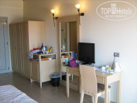 Бронировали номер SeaWiewSuperior, такой в итоге и достался. Номер достаточно простенький (по сравнению с более крутянскими, имеющимися в данном отеле), но очень опрятненький и уютный. Весь отдых ждали появления обещанных в предыдущих отзывах тараканов, но так никого, даже маленького муравьишки в номере не появилось. В первую ночь выявилась проблема с кондиционером - после длительной работы с него начинал литься целый дождь на пол, сходили на ресепшн, поведали о проблеме, в этот же день всё исправили и кондей работал как часы. Достался номер в корпусе, находящимся на самой верхушке отеля. Вообще весь отель расположнен на скале с достаточными перепадами высот по всей территории отеля, поэтому прогуливаясь по этой самой территории нужно преодолевать достаточное количество всевозможных лестниц, наклонных дорожек и иных привратностей рельефа. Всвязи с этим сразу хочется оградить от посещения данного отеля всем у кого проблемы с ногами или просто лень постоянно ходить то вверх, то вниз :))) Мы лично воспринимали это с пониманием и даже удовольствием. Зато благодаря этой скалистости территории отеля и всех окрестных территорий тоже - виды вокруг..... это ЧТО-ТО! ОЧЕНЬ красиво!! Причем нам особенно понравилось, что из номера было не видно не только море, но и побережье. Особенно это удовольствие это усиливалось вечером, когда темнело и всё побережье разгоралось тысячами огоньков в соседних отелях, в близлежащей деревеньке и вообще по всем склонам. Что еще хочется сказать о территории отеля, это то, что хотелось бы побольше зелени! Растительность достаточно скудновата, даже в соседнем BlueBay 3* всё намного более зелено. Может это из-за того, что SeaSide достаточно "молодой"...