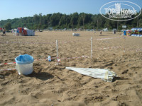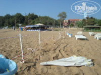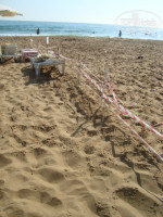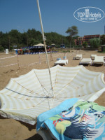Дорога на пляж проходит через туннель ужасного вида, территория после него завешена сетками (т.к. по бокам от тего вообще что-то типа помойки), пляж находится на общественном пляже, огорожен какими-то лентами и палками (типа частокола),бара на пляже нет, туалет - общественный (где турки приезжаются мыться целыми семьюми), музыки тоже нет. Лежаки и матрацы есть, полотенец нет вообще, зонтики есть (несколько нормальных, остальные драные и ржавые), и ставить их скорее всего придётся самим, т.к. этот мужик, который должен следить за нашим пляжем, типа ставить зонты и т.п., потостоянно тусуется у туалета или вообще уходит в отель... девушки сами ставила эти зонты, а потом, когда начинался сильный ветер - они начинали летать с этими острыми палками... в общем там вообще кошмар...