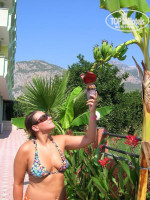 всем привет:))) я отдыхала с друзьями в этом отеле с 7 по 16 августа...все понравилось!!!...персонал очень вежливый, и доброго утра и вечера и приятного аппетита пожелают, убирали все мгновенно, работали оперативно, всегда улыбались...особенно хотелось бы отметить работу официантов Идриса и Мамеда и конечно бармена Охура...всегда составляли мне компанию в бильярд, особенно их чемпион отеля по бильярду Идрис:))) девушка на ресепшине Марина просто чудо, всегда поможет в любой ситуации, пять баллов...когда мы приехали нас сразу же разместили в номере, номер чистый , уютный с прекрасным видом с балкона на горы, кровати очень удобные, в номнрн есть все необходимое для комфортного проживания...кондиционер работал отлично...посторонние звуки такие как пение петухов и маудзина по утрам мне совершенно не мешали, т.к. сплю я очень крепко...зов на молитву было практически не слышно благодаря пластиковым пакетам и кондиционеру...убирались в номере часто, через день...вот только иногда приходили очень рано, или мы просто очень долго спали;) для тусовшиков это место явно не подойдет, т.к. отель можно сказать такой семейный, тихий, но для нас это не было проблемой, т.к. мы ходили на местные бесплатные дискотеки...советую посетить пенные дискотеки, ощущения не передаваемые...кормили в отеде отлично, всего было в изобилии на любой вкус, хотя когда мы читали отзывы по еде немного насторожились перед поездкой, но все оказалось гараздо лучше..каждый день были блюда из мяса, рыбы, птицы, много различных салатов, вообщем у нас была проблема в другом, приходили с желанием немного перекусить, а в итоге выкатывались из-за стола, повару респект и уважуха...спиртные напитки особо не впечатлили, наверное потому что сильно ими и не увлекалась, но друзья с удовольствием пили пиво и другие спиртные напитки...наливали мало, но мы же русские, всегда находим решение, друзья брали сразу по 2 или 3 бокала, как бы для остальных, вливали на месте все в один и получалось нормуль...бассейн хороший, всем хватало места..половина шезлонгов всегда была свободна, так что место всегда можно было найти...море находится не далеко, 5-10 мин. ходьбы, в зависимости от скорости шага...но нам это даже нравилось, т.к. по дороге были всякие магазинчики с водой и спиртным, сладостями, сувенирами и вещами...море просто сказка, теплое, соленое, а главное прозрачное, мы брали с собой плавательные очки и много ныряли, смотрели миорских обитателей, с друзьями мы насчитали 15 видов рыб...это просто фантастика...единственное о чем пожалели, это о том, что не было подводного фотоаппарата:(...рекомендую любителям понырять, взять в ресторане остатки хлеба, их можно попросить у официантов, и завернув в мяких хлеба небольшой камень отпустить его на глубине и понаблюдать за происходящим, поверьте, вы не пожалеете...еще нам говорили что возое буйков видели полуметровую черепаху, но мы ее так и не увидели...может вам повезет...конечно хотелось бы отметить, что природа в Кемере просто потрясающая: растительность, горы...еще было жалко что мы не попали в сезон, когда созревают апельсины, мандарины, бананы и гранаты, т.к. мы на них смотрели когда они еще были зелеными, думаю это тоже удивительная картина, т.к. отель окружен апельсиновой и мандариновой рощами...