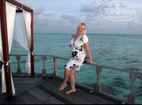 Самый большой остров на Мальдивах. Огромная территория в длину 1500 км. Есть большой сад где выращивают все овощи и ресторан для веганов. Очень удобно. Красивые бунгало со вторым душем во дворе. Пляж вокруг острова, длиннющий. Можно лежать и даже не видеть соседей. Возле номера стоят два шезлонга из натурального дерева. Подвинуть просто нереально весят кг 60 или больше. Еда в ресторане очень вкусная и разнообразная. Брали FB. Покупали на ужин вино и сок или фанту. Ценник конский. Повара очень любят шоколад. Угощала и мне резали манго просто гору на тарелку. Анимация прикольная, местные танцуют национальные танцы. Это нечто. С пирса итальянского ресторана плавали смотреть рыбок. Их огромное количество. А если покормить то они просто огромной стаей собираются. Под лестницей жила большая мурена. Вид конечно жуть. Каждый день прилетела цапля как будто позировала. Вечерами до ужина шел дождь. В номерах есть два зонта, очень удобно. С одной стороны острова мертвая линия кораллов у берега. И глубина см 60. Постоянно снуют рифовые акулы. Купаться там можно если лечь на дно. Сменили номер на следующий день доплатив 300$. Каждый вечер в 9 приплывают скаты. Им можно дать резаную рыбу. Они берут её с руки как пылесосы. Приятные на ощупь как коврики. Работники на них прямо вставали. А возле вотербунгало приплывают акулы. Их тоже кормят. Завораживающая картина. 2-3 метровые монстры заглатывают куски рыбы и отталкивают друг друга. До отеля добираться долго. Вначале на маленьком самолете, потом на катере. Территория очень красивая. Орхидеи и много кокосовых пальм. Они свалены в большие кучи по всему острову. Большие летающие лисицы кружат над пальмами. Это вообще треш. Они висят как в фильмах ужасов вниз головой. То ещё шоу. От них манго растят в бутылках, иначе съедят всё. Огромный бассейн внутри острова, с хорошей музыкой. В общем место впечатляющее. Если простому человеку не летать лет 5 никуда, можно попробовать скопить. Сейчас туда попасть стоит немало. 21 декабря 10 ночей на FB на двоих 778К.