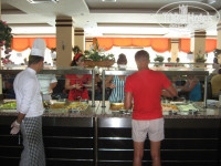 Отдыхали в конце августа с детьми.Приехали мы в 9 утра,расселили нас только в 13-00, (заселение в отеле официально с 14-00 часов),пришлось 4 часа сидеть в холле отеля,не помогли даже 20$,вложенные в паспорт(возможно действительно не было свободных номеров),зато потом нас расселили в отличный семейный номер,хотя по путёвке нам полагался "Стандарт".Отель в целом понравился,уютный,новая мебель,в номерах убирали каждый день,маленькая территория в нашем случае была только плюсом,так как дети всегда были навиду.Примерно с 9 часов утра народ нёсся занимать лежаки у бассейна,та же история была и на пляже,хотя на самом деле места всегда всем хватало.А вот в главном ресторане, на ужине, не всегда находились свободные столики,иногда приходилось ждать,да и на улице,где готовят на гриле, тоже частенько выстраивалась очередь. В целом питание нормальное,мы брали привычную нам пищу,поэтому никаких проблем с желудками ни у кого, к счастью, не возникло.Мне понравились местные йогурты с кусочками фруктов,младший ребёнок у нас "подсел" на пирожные местного производства и лепёшки,которые пекла женщина в баре на пляже :) Супы в основном острые и на любителя.Фруктов:арбузы,дыни,яблоки,сливы,груши,инжир,и т. д.,тоже всегда было предостаточно.Днём можно было перекусить в баре у бассейна или на пляже,так что голодным точно не останешься!С напитками конечно по-хуже дела обстоят,соков нормальных нет,только "Юппи",свежевыжатые -за денежку,из алкогольных можно пить пиво,джин,виски,а