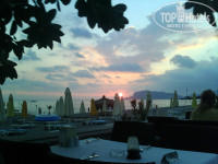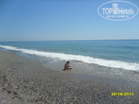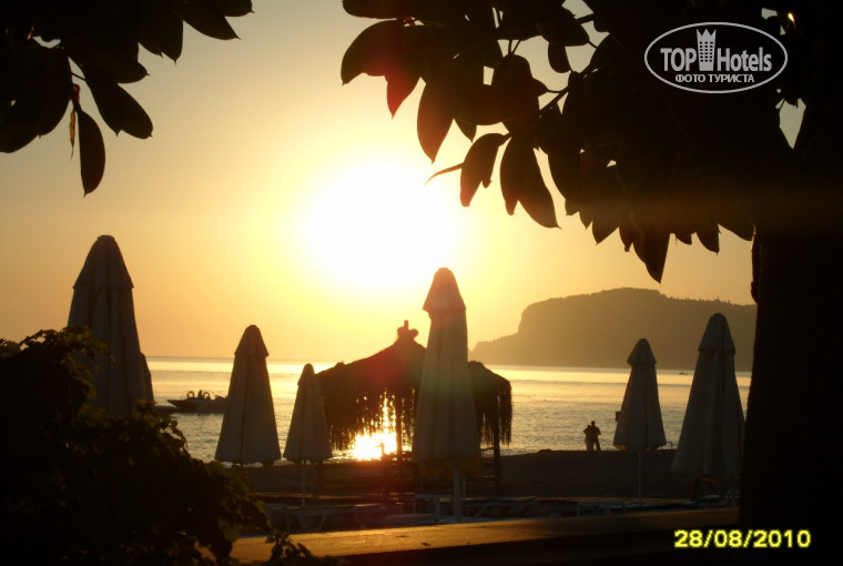 В 21.30 на сцене рядом с детской площадкой проходили разные шоу. Порой было интересно, порой скука смертная. Если совсем скучно, можно посидеть в холле в интернете - там ловится бесплатный Wi-Fi. Вечерком после заката можно было поплавать в бассейне с подсветкой. Прикольненько. Бассейна, кстати, два. Один поглубже прямо перед отелем, рядом с баром. Возле него с лежаками бывали проблемы. Нам больше нравился второй, глубиной до 1.50м, с 3 водными горками. На горках жуткие стыки, но пару раз можно прокатиться. Возле него всегда лежаки были. Про море еще хочу сказать. Пляж сам песчано-галечный. Справа от пирса заход получше. Там в основном все и колбасятся метрах в трех от берега, т.к. глубоко почти сразу. Слева от пирса большие камни, какая-то плита и т.п. Если туда и заходить, то очень осторожно. Зато пофотографироваться в брызгах от бьющихся волн прикольно. Море вообще-то в этом месте опасное, видимо из-за того самого сильного течения. Я за одну неделю 2 раза была свидетелем спасения людей, которых уносило в море. Жуткая картина, я вам скажу. Так что лучше