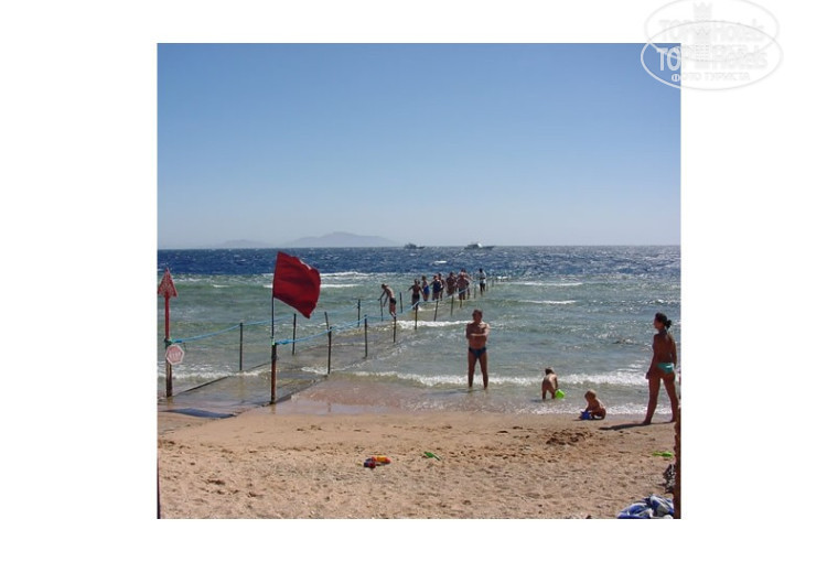 Пляж отеля на территории Иберотеля Гранд Шарм. Деревянный пирс, поэтому спасатели не пускают купаться при волне, но это бывает нечасто, нетерпеливым и хорошо плавающим можно пройтись 20 м по берегу и зайти в море с соседнего пластикового пантона. Лежаков всем хватает. Бар и чистый туалет на пляже есть.