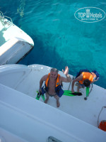 Очень понравилась морская прогулка на "Райский остров". Экскурсию брали у местных, они сидят прямо в холле отеля. На яхте собрали только русских туристов и замечательный экскурсовод Алекс (огромный ему привет!) практически на безупречном русском рассказал нам об экскурсии и о том, как пользоваться маской и ластами. Всё было с юмором и доходчиво, так что даже тётки в первый раз одевшие всё это поплыли абсолютно без боязни. Было четыре остановки. Первая на большом коралловом рифе, где все плавали и любовались красивейшими рыбами и кораллами. Вторая остановка,- свободное купание, чуть-чуть танцы и отличный обед. К слову сказать: когда все вылезли из воды, я ещё плавал и имел счастье видеть большую мурену (метра 3 не меньше). Третья остановка на самом "Райском острове". Красивый остров с пальмовыми зонтиками, рестораном и кафе(туда после обеда ни кто не пошёл). Говорят, песок на этом острове обладает лечебными свойствами. Тоже купались и загорали. И четвёртая остановка,- дельфины и рыбалка на обычную донку. Дельфинов мы практически не видели, но зато рыбалка... ДА ЗДРАВСТВУЮТ РУССКИЕ РЫБАКИ!!! Я первым поймал рыбу,- АбуДжиб называется. В конце нам предложили видео диск с нашей экскурсией и не смотря на то, что я сам всё снимал на камеру, мы взяли его. Помимо нашей экскурсии на диске записаны дайверские съёмки красного моря и местная музыка. Нам очень понравилось.