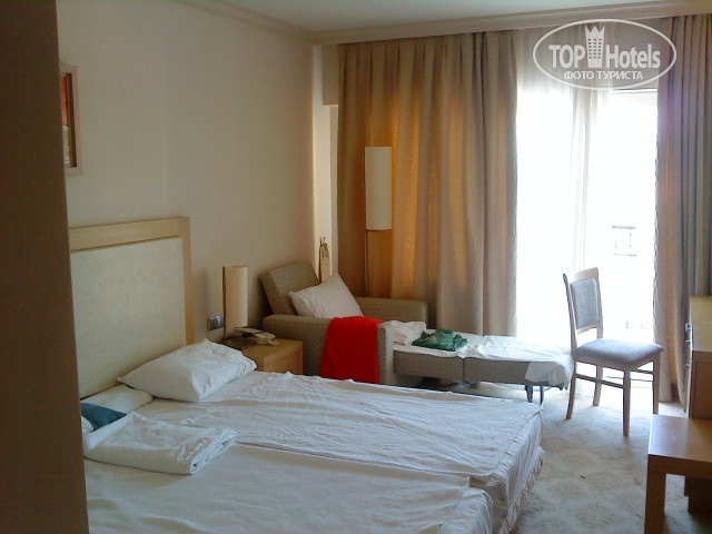 Крупный минус - это "анимация"! Днем на пляже, а вечером рядом с отелем включается очень громко музыка. Бьет по мозгам и ушам! Было бы замечательно если бы они просто включали не её так громко. Но это видимо принято в Турции: вечерами у каждого отеля грохот и уже ничего нельзя разобрать: кто поет, что поет. Думаешь только о том, как скорее скрыться от этого бедлама. Сильно доставало!