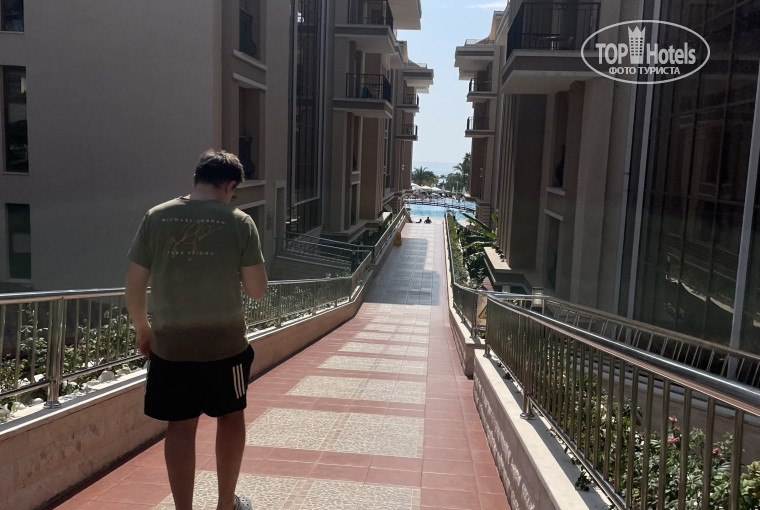 + первая береговая линия. Да, пляж близко. Он не огорожен от других пляжей, но территория хорошая - песок. Есть шезлонги, есть пирс.