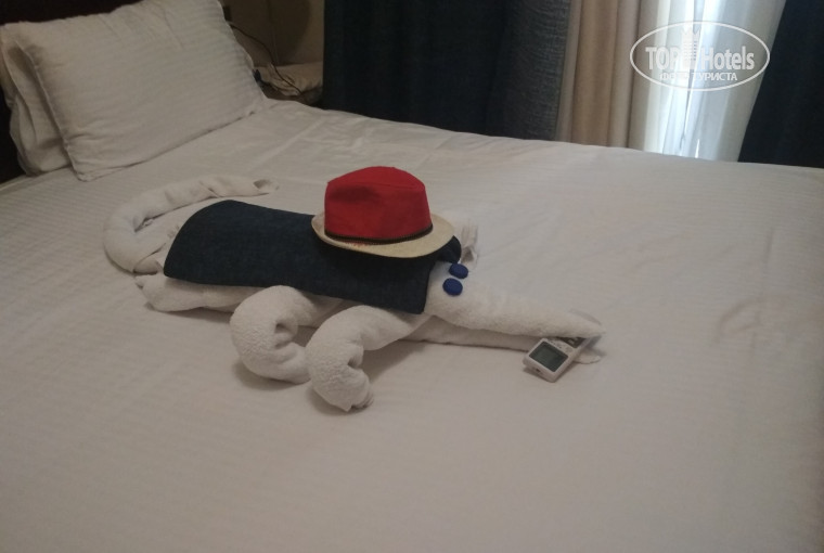 Отдыхали с семьёй с 06 по 17 октября. Заселили с разу, на следующий день попросили замену номера, персонал пошёл на уступки, Заселили в семейный номер без Доплаты. Анимация очень хорошая, волейбол, аква аэробика, бочча. Аква парк великолепный, для всех возрастов. Отель очень подходит кто с маленькими детьми, есть бухта. Кто хочет поплавать в открытом море, нужно пройти метров 400 будет вход в море, но там нужны коралки. Отель расположен в начале променада, есть где погулять вечером, много магазинов,можно купить фрукты. Еда вкусная. Ребёнку очень нравиться детская дискотека, перед дискотекой разрисовывают лица.