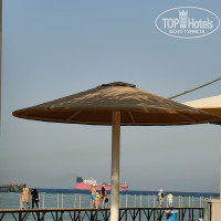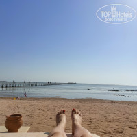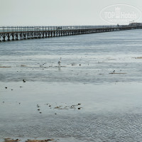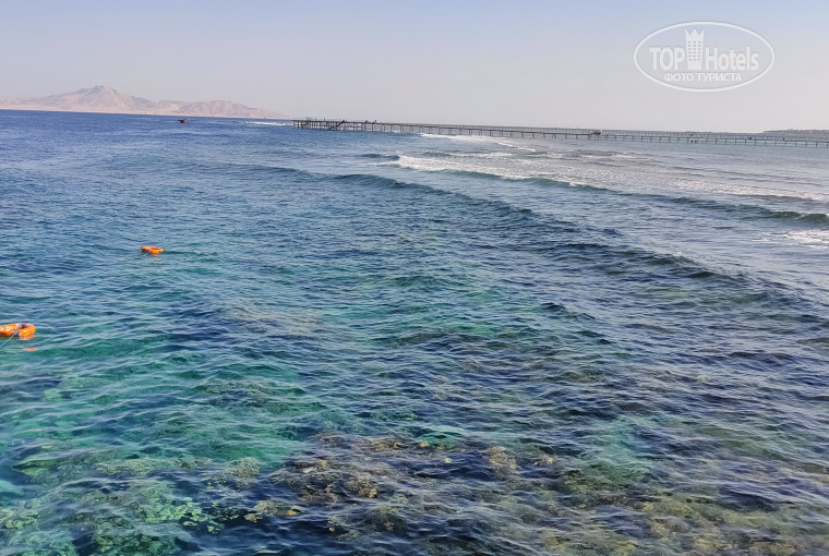 Море: понтон 800 метров. Мы ходили два раза на море иногда, вообще без проблем Заходов четыре получается. Три на мелководье и в конце глубина. С утра был красный флаг, иногда после обеда до трёх примерно. У берега сидят с детками или сами, вода зависит от прилива и отлива. Рыбок много на третьем заходе, с маской там каждый день была. Есть лежаки.