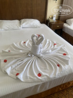 Уборка в номере ежедневно, уборщица каждый день крутила нам фигуры с полотенец. смена постельного раз в два дня. В номере мы сами поддерживали порядок, поэтому и уборкой остались довольны. Просто иногда посмотришь проходя мимо номеров в какой разрухе люди оставляют номера, уходя покушать или на пляж, мне не понятно, как уборщица должна все это прибрать? должна сначала разложить ваши личные вещи по местам, а потом приступить к своим непосредственным обязанностям? Рекомендация отдыхающим - сами в свинюшек не превращайтесь и тогда с уборкой номера все будет хорошо.