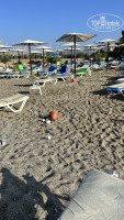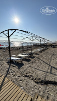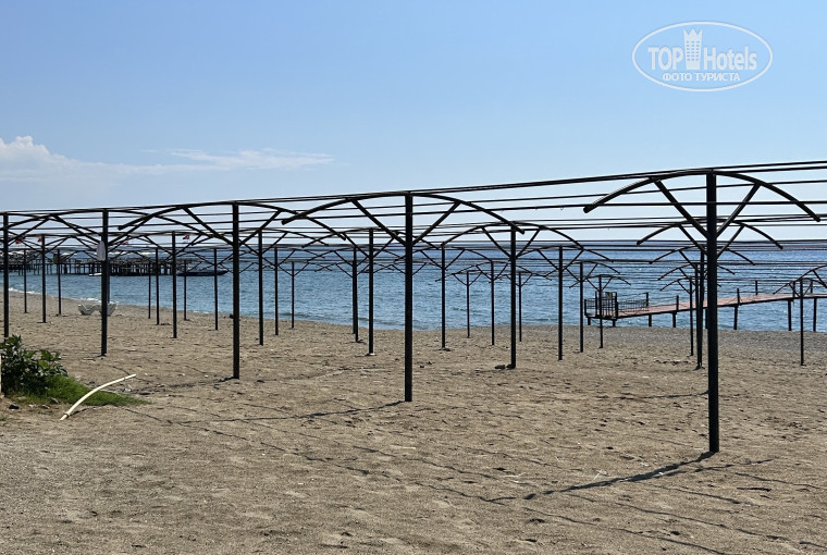 Пляж очень грязный. С 01.10.2023 его перестали убирать. Мелкая Галька, вход не резкий. Чуть дальше плоские камни, не острые. Море с 28.09 было теплое. Навес на пляже, под ним Шезлонги пластиковые, целые, на них старенькие матрацы. Небольшой пирс, с зонтиками и металическими шезлонгами.