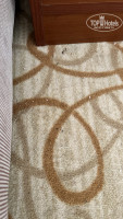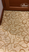 Мебель в номерах простая. Холодильник очень старый, ему лет 15-20 весь желтый, с характерным запахом. Деревянная Дверь в ванную комнату была разбита и замазана краской (фото). Видок, устрашающий. Ковролин в номере в жутком состоянии (Фото). Возле входа он весь грязный, затоптаный, возле балкона огромное грязное пятно.